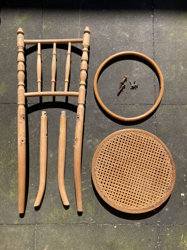 Maar ho, wacht, stop, daarom hoeven deze stoelen toch nog niet weg! Ze zijn een beetje uit de mode misschien, maar vaak prachtig gemaakt. Neem nou de klassiekers van Thonet met gematte zitting. Gebogen hout, ranke stoelpoten, prachtig, Ikea-avant-la-lettre; deze stoelen zijn gemakkelijk uit elkaar te halen, omdat ze ooit vervoerd werden van producent naar verkoper als bouwpakketje. Zonde om weg te doen!