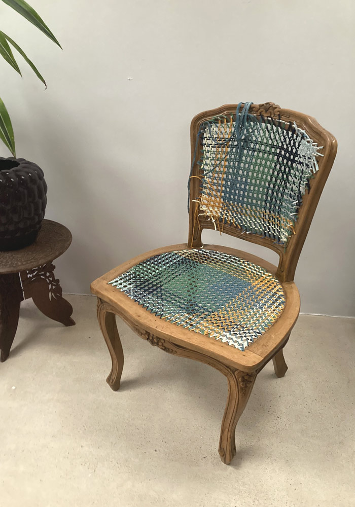 Als je zelf stoelen hebt die een nieuwe zitting nodig hebben. Graag weef, mat of bies ik jouw / jullie stoelen opnieuw in de kleuren die je wenst. Natuurlijk kan ik ook een voorstel doen op basis van je voorkeuren en de kleuren van je interieur.