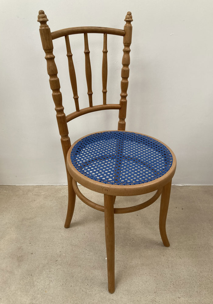Andere stoelen heb ik gevonden op straat bij de vuilniscontainers in mijn buurt of op het laatste moment van Marktplaats geplukt. Allemaal stoelen die te goed zijn om weggegooid te worden. Van deze stoelen valt echt iets moois te maken, circulair, kunstzinnig en met gebruik van ambachtelijke technieken als biezen en matten.
